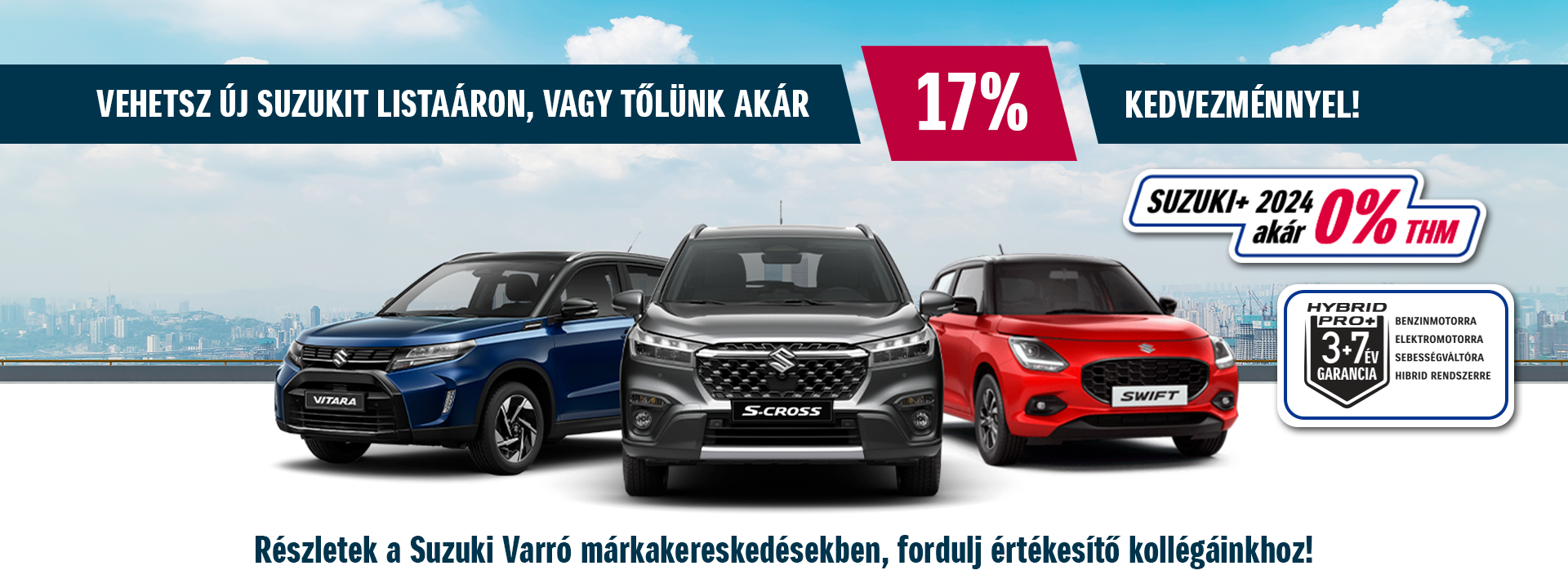 A zárt és nyílt végű konstrukcióban is elérhető Suzuki+ 2024 segítségével, akár 0% THM-es lízingfinanszírozással lehet új, 2024-es modellévű Suzuki személygépjárműve!